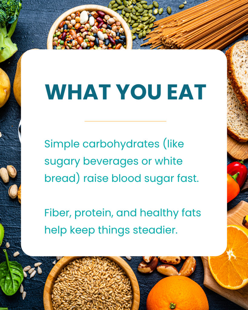 By tuning into your body’s responses and building simple, consistent habits—structured meals, mindful breathing, restorative sleep, and gentle movement—you can train your nervous system to stay calm and your blood sugar to stay stable.